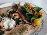 Galette de sarrasin aux épinards, jambon et fromage de chèvre