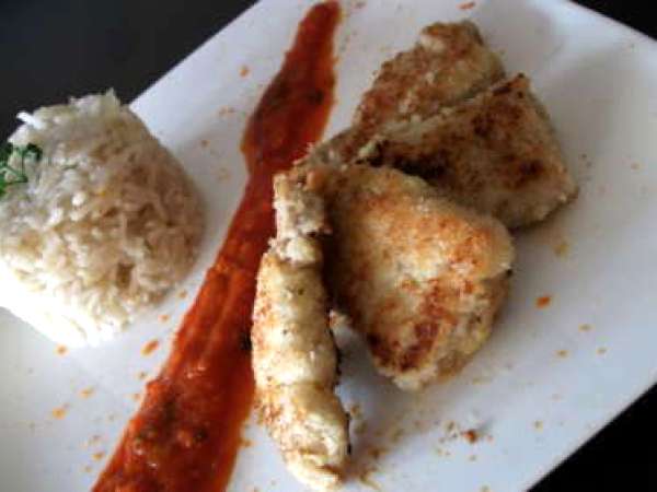 Escalope de porc pané à la noix de coco et sa sauce tomate epicé