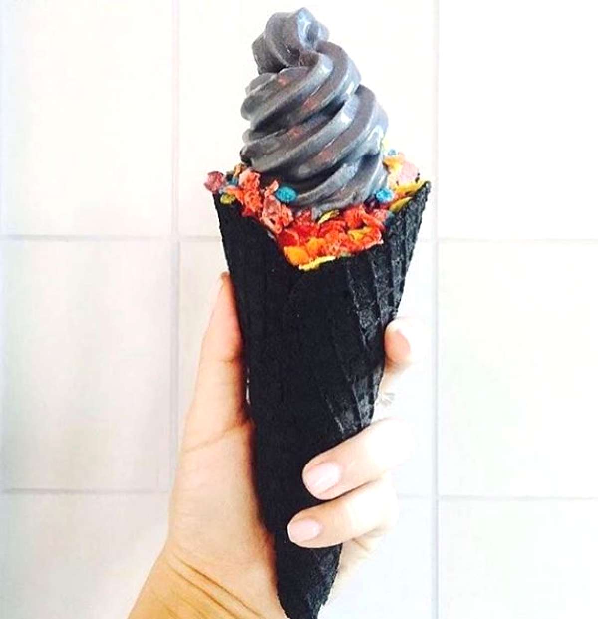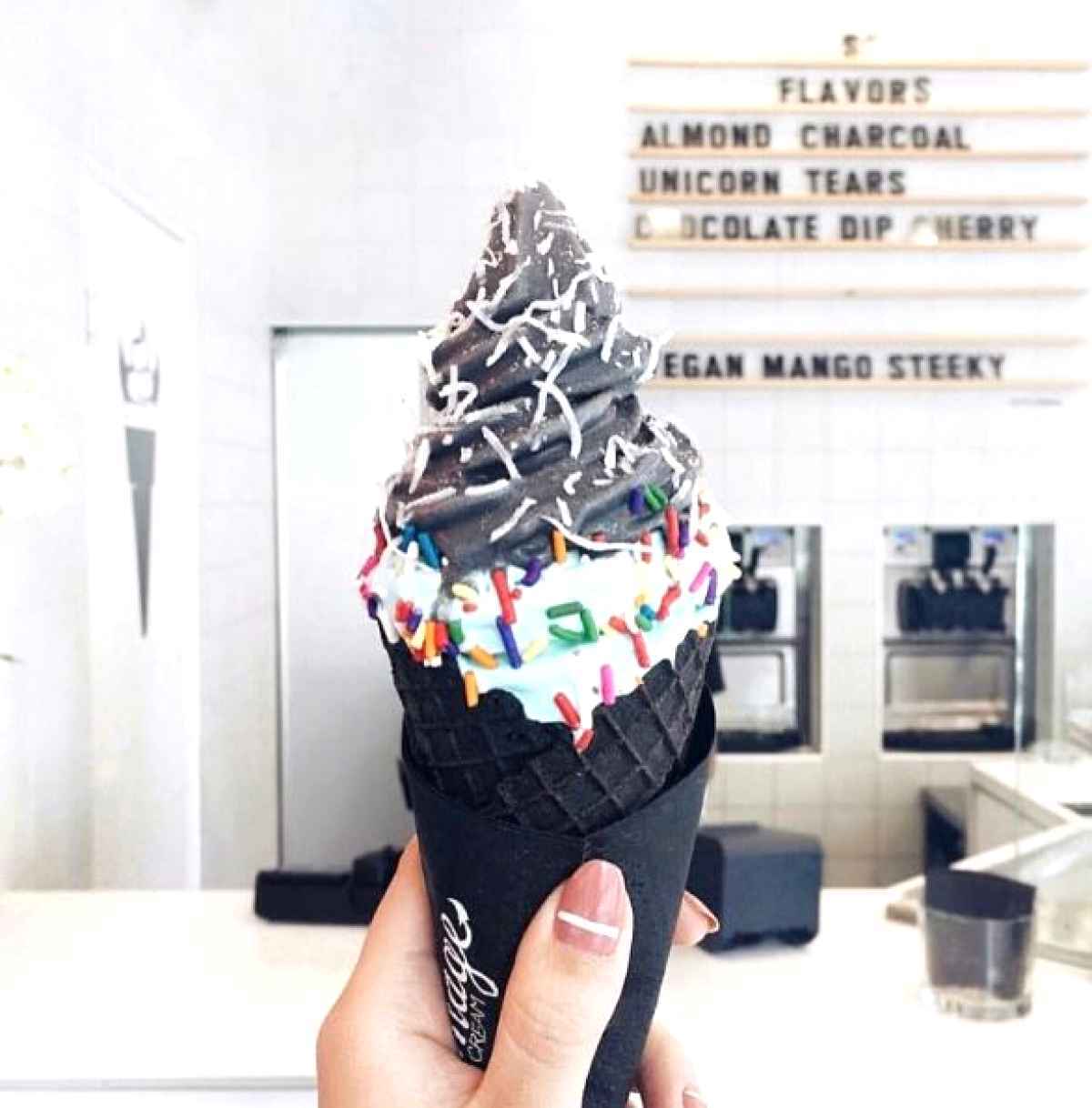 À première vue, on se demande ce que ça peut bien être... On vous explique: C'est sur Instagram que le phénomène éclate! Cette glace originale est commercialisée par , située à Los Angeles! Elle est traitée au charbon de bois, et est aromatisée à l'amande.
