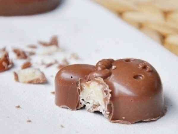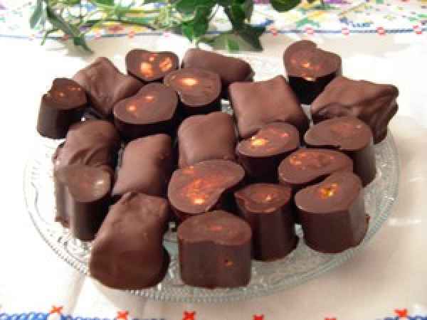 Chocolats maison, fourrés au chocolat blanc et pralin