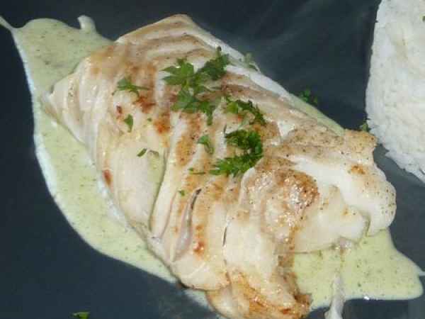 Dos de cabillaud et sa sauce à la crème d'ail et persil