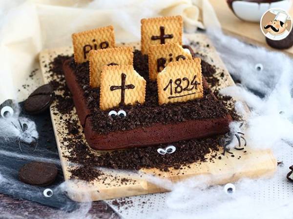 Effrayez vos invités à l'heure du dessert avec ce brownie cimetière! Une présentation terrifiante et surtout hyper simple à faire!