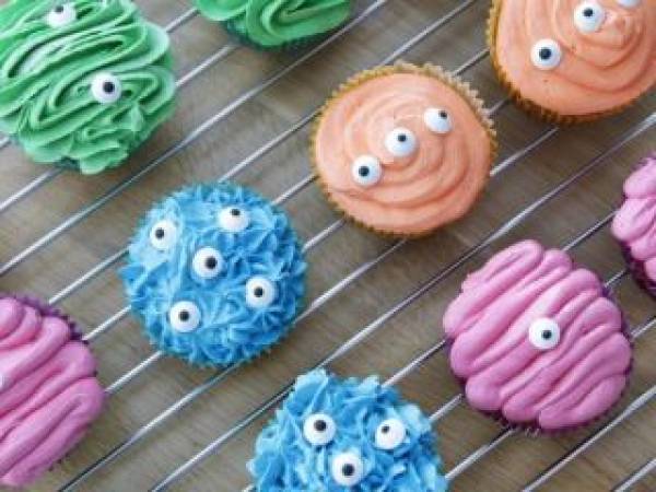Rien de plus faciles à faire que des cupcakes! Préparez le muffins bien moelleux de base et amusez-vous avec la décoration à déposer sur le dessus! Pour Halloween, les monstres s'invitent à la fête ;-)