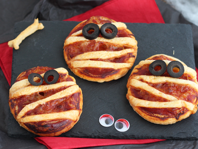 Ça croustille pour l'apéritif d'Halloween! Une armé de momies pizzas s'invite à la fête. Le seul moyen de s'en débarrasser? Les dévorer jusqu'à la dernière miette ;-)