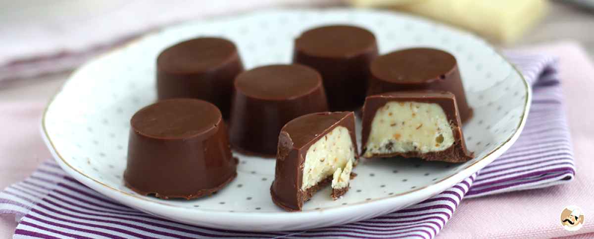Sortez vos moules en silicone du frigo et garnissez-les avec le mélange chocolat blanc + pralin. Mettez au frais 1h.