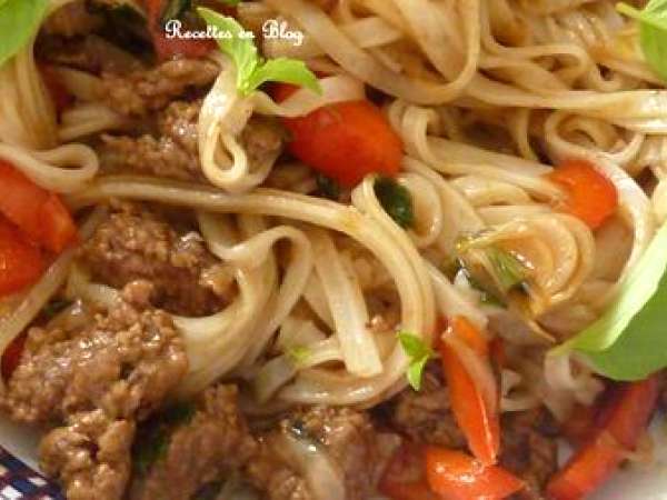 Nouilles sautées aux 3 poivrons sauce aigre-douce