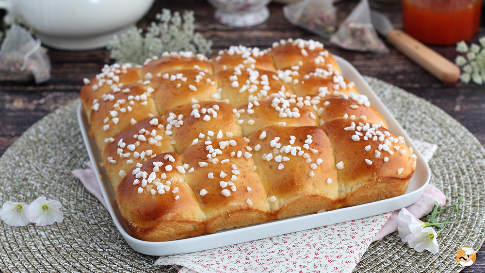 Garnie de sucre perlé, vous pourrez aussi fourrer les boules de confiture ou pâte à tartiner. En tout cas, elle fera chavirer toute la tablée pour le goûter... et aussi pour le petit-déjeuner! Et oui, on vous conseille d'en garder un peu pour le lendemain matin: doux réveil et bonne humeur assurés!