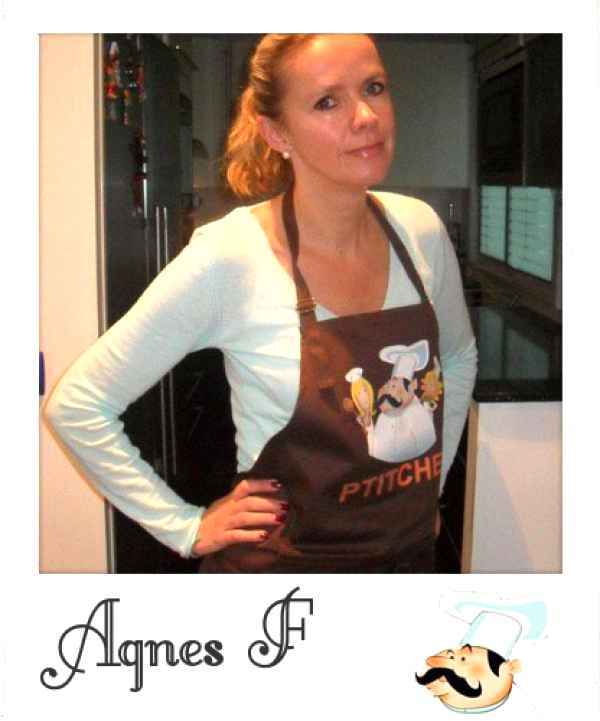 À 47 ans, cette mère au foyer et Ptitchef en herbe a décidé de consacrer sa vie à sa famille ainsi qu'à sa passion, la cuisine. Née en Mayenne et vivant dans les Alpes-Maritimes depuis 25 ans, cette maman d'une ado de 15 ans adore manger et cuisiner! Agnès consacre d'ailleurs beaucoup de temps à son blog pour le grand plaisir de son mari et de sa fille qui sont les premiers à formuler leurs avis mais également leurs critiques constructives. De nature curieuse, elle adore découvrir de nouveaux pays, de nouvelles cultures et bien sûr de nouvelles recettes! D'ailleurs, elle en ramène de chaque voyage!
