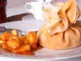 Aumônière de crêpe aux pommes et caramel au beurre salé