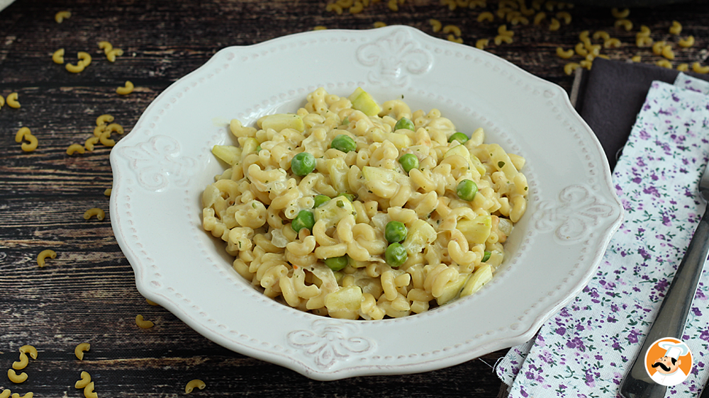 Le mélange doit être onctueux, les pâtes fondantes et les courgettes, petits pois légèrement croquants.