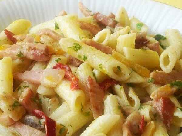 Pâtes pennes aux lardons