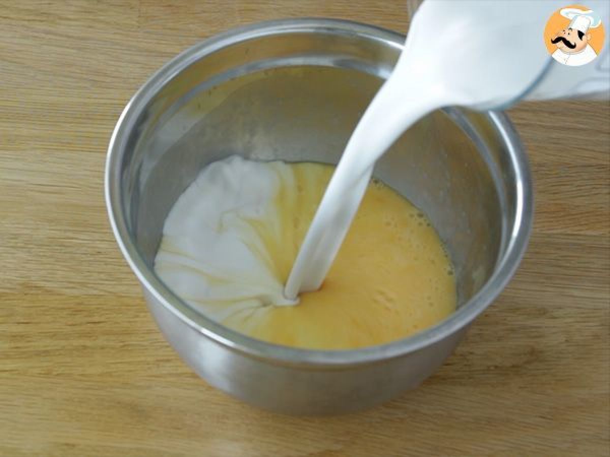 Sur la recette classique on peut mettre une boîte de lait concentré sucré et une boîte de lait. La mesure étant la boîte du lait concentré