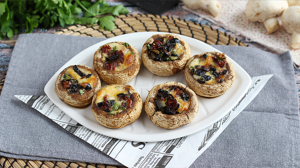 Pour embellir votre apéro, que diriez-vous de préparer des champignons farcis? Garnis de mozzarella, tomates séchées et persil, on peut vous assurer que cette recette parfumée ravira vos invités ;-)