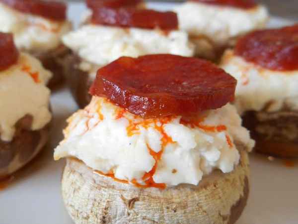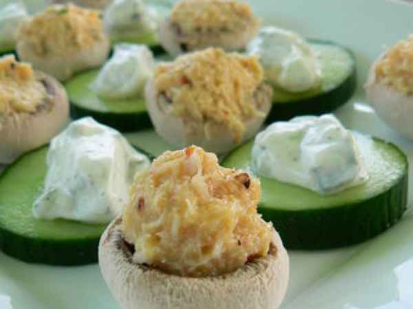 Il vous suffira donc simplement de vous munir de champignons de la taille de votre choix: petits pour les bouchées ou plus grands à partager. Et d'ingrédients à votre goût pour la farce, le tout coupé en petits morceaux.