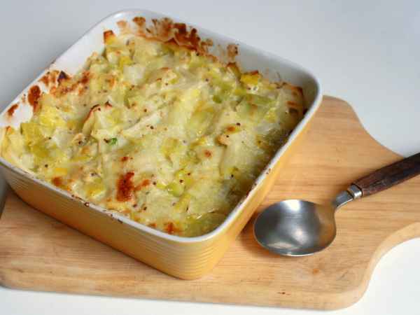 Gratin de poireaux à la crème de brie