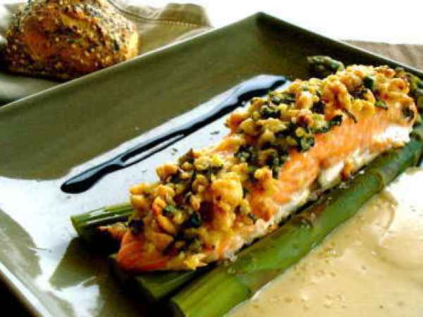 Crousti saumon, asperges & sauce cremeuse au citron