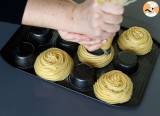 Pochez votre pâte sur les moules à muffins en formant une spirale. Veillez bien à combler les trous avec de la pâte s'il en reste. Juste avant d'enfourner, applatissez le haut de vos bols. En effet, lorsque vous retournerez vos vols, la base devra être plane pour que vos bols tiennent ;-)