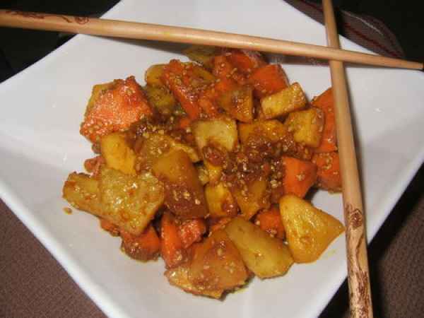 Wok de légumes d'automne au curcuma frais & sésame