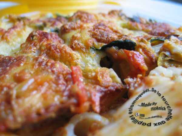 Gratin de pâtes aux tomates et aux courgettes à l'estragon