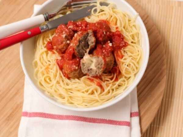 Boulettes de boeuf coeur mozzarella et spaghettis de courgette