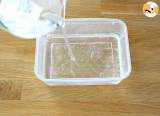 Diviser cette préparation dans deux récipients. Réserver le premier et ajouter le colorant alimentaire jaune dans le deuxième. Mélanger.
