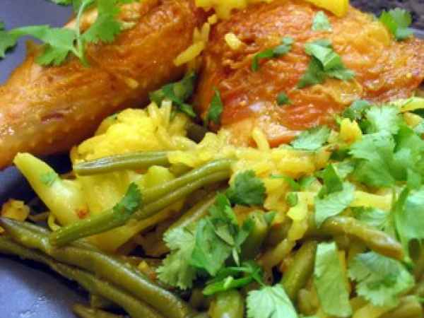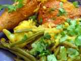 Poulet curry citron et pilaf de chou-fleur et haricots verts