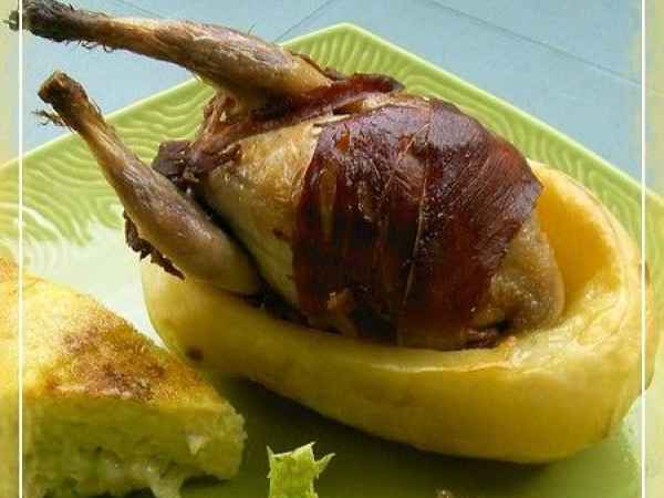 Cailles au cidre farcies aux pommes et au foie gras