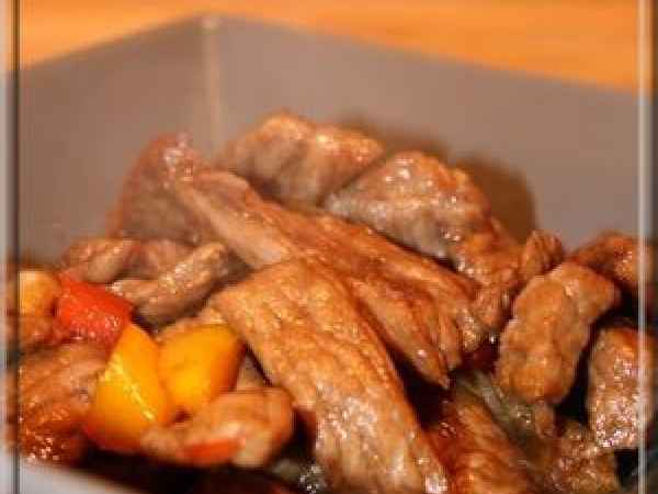 Veau sauté au miel et aux poivrons