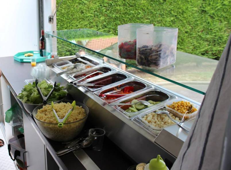 Tandis que l'été, son Food truck se transforme en un véritable bar à salade, prêt à servir à la demande des salades gourmandes et variées.