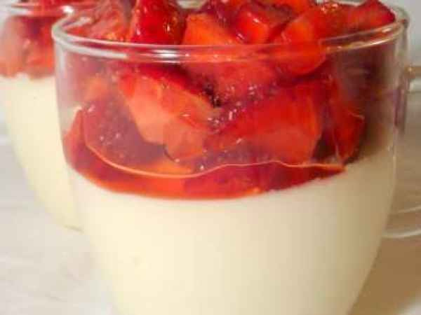 Panna cotta, tartare de fraises à la fleur d'oranger