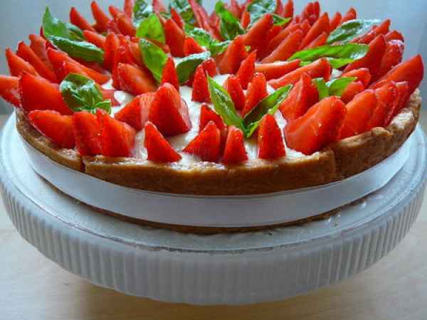 Tarte fraises & basilic, crème pâtissière à l'huile d'olive