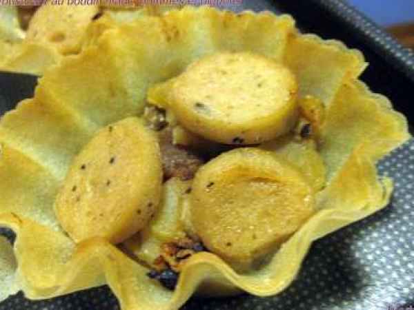 Croustillant au boudin blanc, pommes et oignons