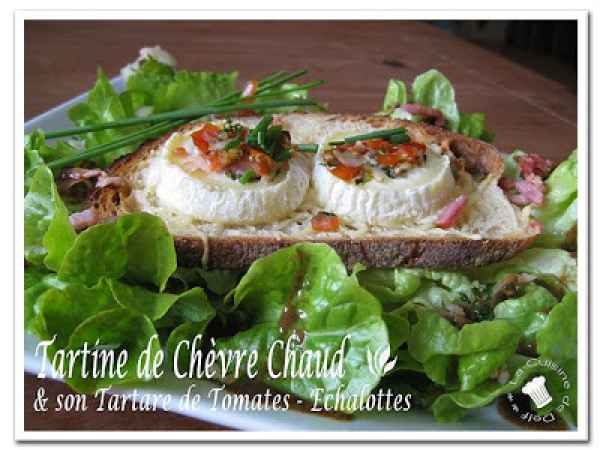 Tartine de chèvre chaud et son tartare de tomates - echalotes