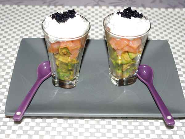 Concernant la combinaison de saveurs, on a décidé de lier deux aliments qu'on affectionne particulièrement: le saumon et l'avocat. Et pour une touche chic sur vos verrines, réalisez une chantilly salée au citron! À étaler à l'aide d'une poche et d'une douille cannelée pour un rendu raffiné.