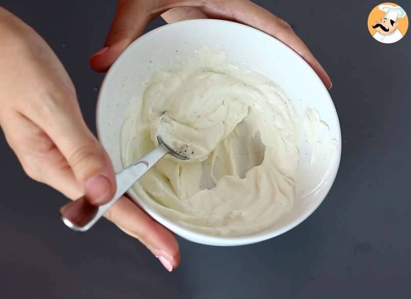 Dans un bol, mélangez le fromage frais avec le jus de citron, le sel et le poivre.