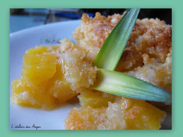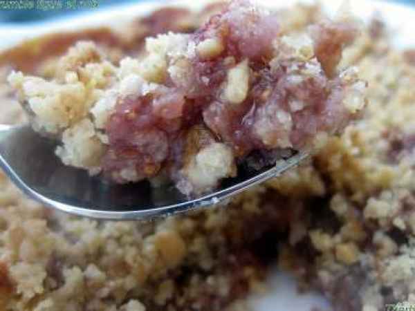 Placez vos fruits cuits dans un plat allant au four. Par-dessus, disposez le crumble.