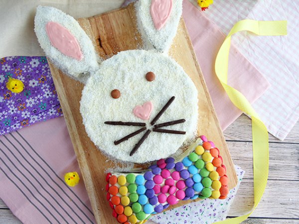 On vous aide également à transformer la forme de vos préparations en leur donnant un belle allure de lapin. C'est le cas de notre gâteau lapin, ou plutôt de nos gâteaux puisqu'ils étaient 2 au début et se sont rassemblés pour ne former qu'un et ainsi obtenir un lapin chic avec son noeud papillon coloré. La version tarte lapin sera tout aussi appétissante et facile à réaliser grâce à une pâte sablée joliment découpée, une crème chantilly à la vanille et des oeufs colorés.