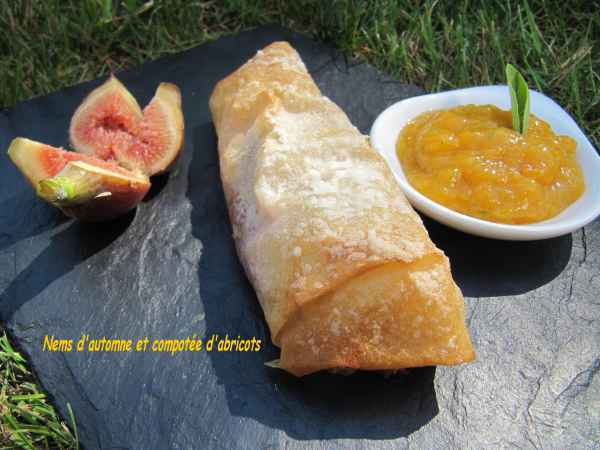 Nems de pommes caramelises sauce abricots the vert basilic