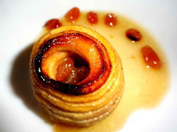 Pommes au four, caramel et p'tits raisins