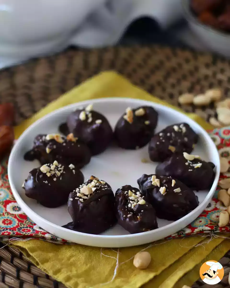 Recette complète ❘ Snickers: Dattes farcies enrobées de chocolat
