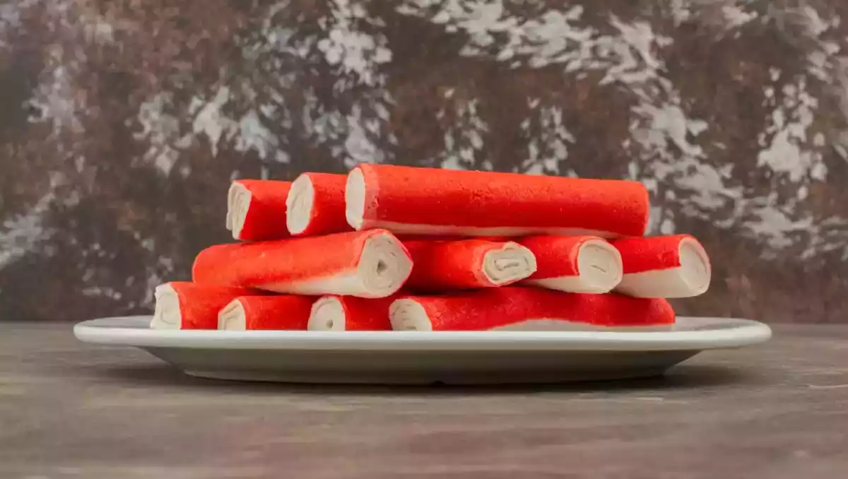 Sous son allure de bâtonnet blanc et orange, le surimi n’a rien d’un crustacé. Il s’agit en fait d’une pâte de poisson blanc (souvent du colin d’Alaska ou du merlu), hachée, rincée, mixée, aromatisée et colorée pour imiter la texture et le goût du crabe.