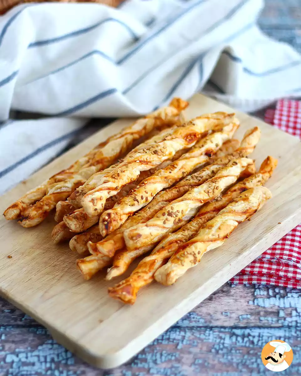 Ces gressins de pâte feuilletée au sésame sont une friandise croquante et savoureuse qui peut être préparée en quelques minutes avec des ingrédients que vous avez certainement dans votre garde-manger ou votre réfrigérateur. Parfaits pour ne pas gaspiller la pâte feuilletée périmée, ils constituent un en-cas simple mais irrésistible, idéal pour toutes les occasions.