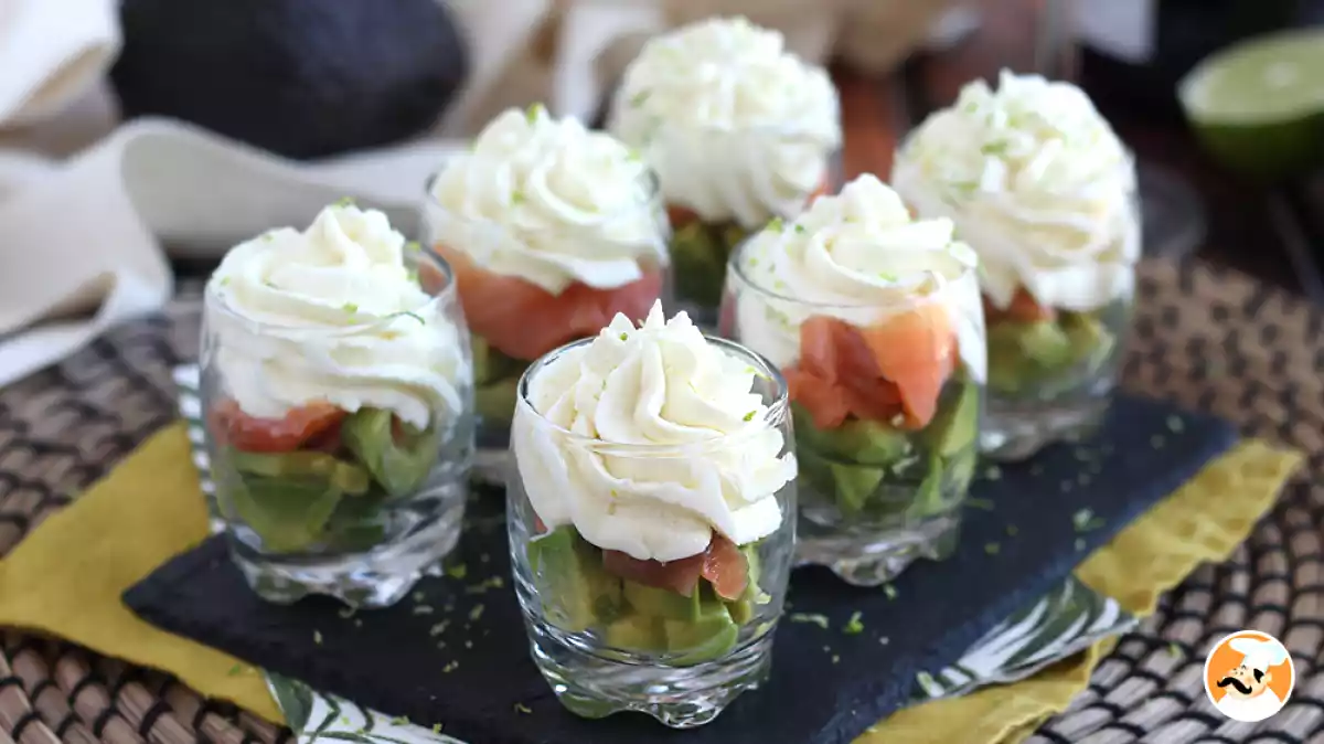 Concernant la combinaison de saveurs, on a décidé de lier deux aliments qu'on affectionne particulièrement: le saumon et l'avocat. Et pour une touche chic sur vos verrines, réalisez une chantilly salée au citron! À étaler à l'aide d'une poche et d'une douille cannelée pour un rendu raffiné.