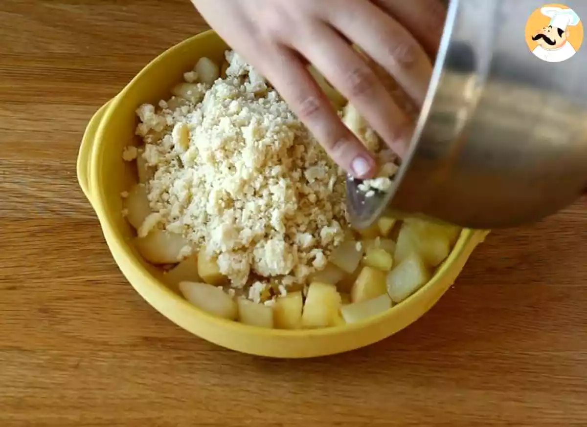 Dans la famille Ptitchef, une recette est transmise de génération en génération et toujours autant appréciée à l'heure du dessert: le crumble! Mais attention ici, ne pensez pas n'y trouver que des pommes ;-) En plus de l'ajout de poires, notre autre secret est... la poudre d'amandes. On a volontairement troqué une partie de la farine par cet merveille afin de rendre le tout encore plus gourmand :-)