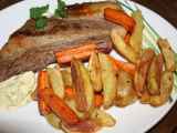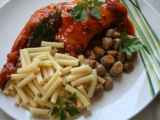 Rôti de porc mariné à la plancha et tomates à la provençales
