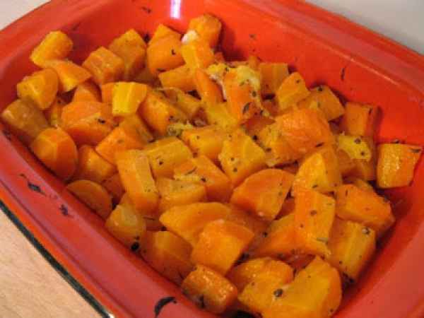 Carottes rôties à l'orange, ail et thym