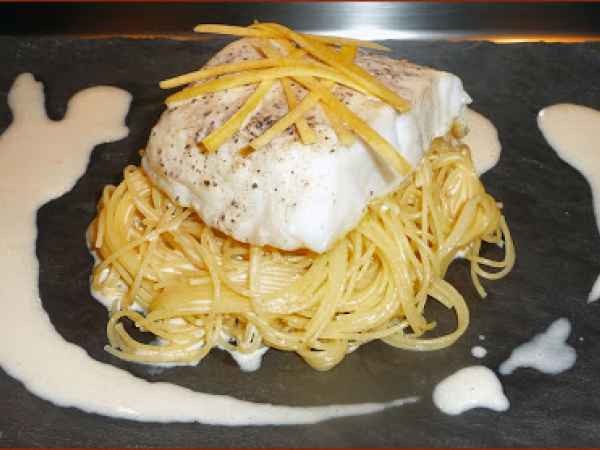 Dos de cabillaud à la carbonara ...