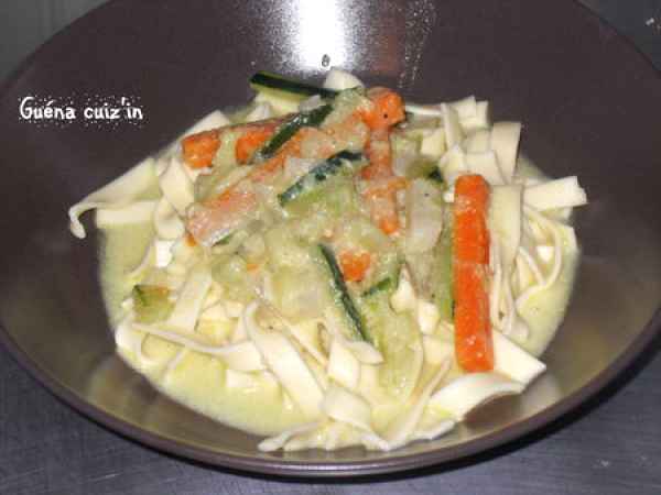 Pâtes aux légumes et lait de coco