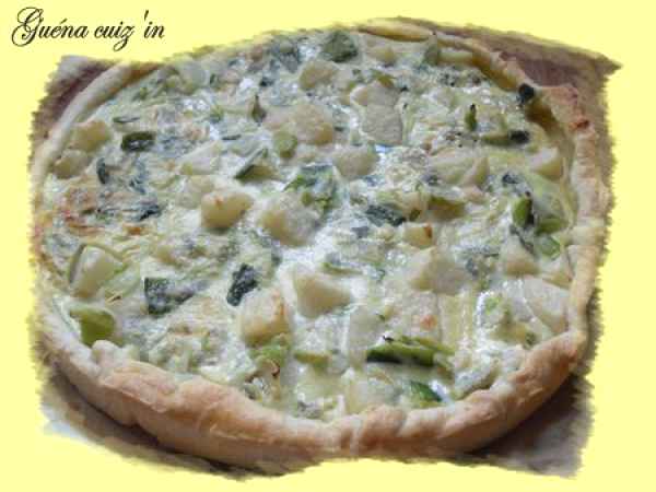 Tarte aux poireaux, bleu et poire