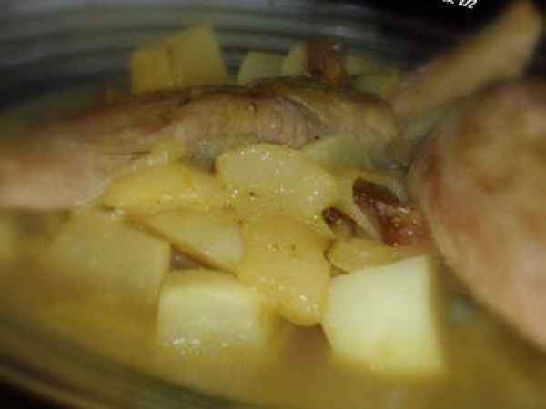 Tajine de poulet aux poires, aubergines et cannelle